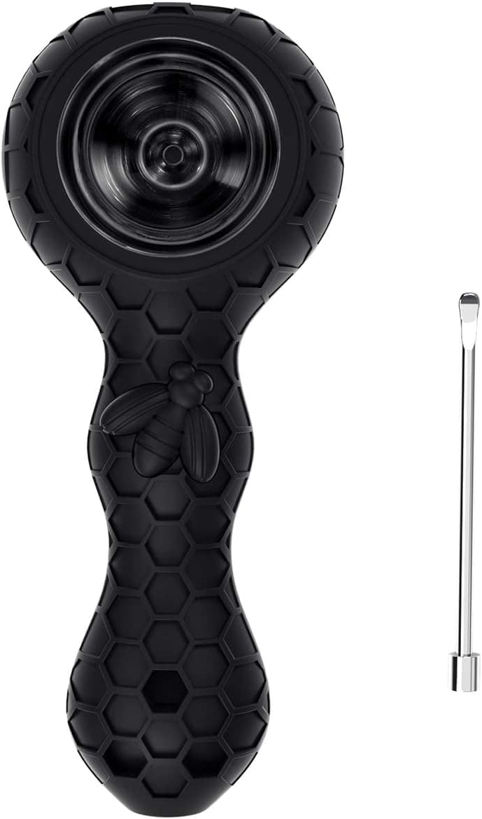 Pipa de silicona para fumar, resistente al calor, diseño de panal, con cuchara, negra